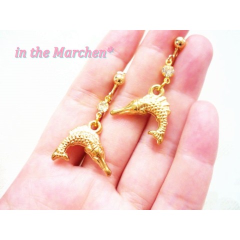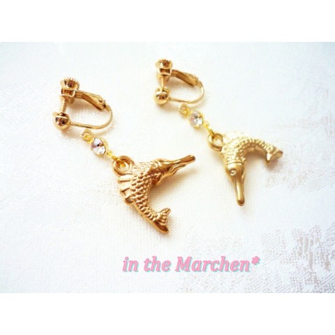【in the Marchen*】「幻想生物 金の魚の耳飾り」イヤリング(ダツ突き刺す魚)