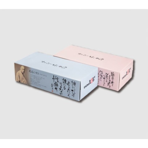 オナニーをテーマにした詩で一世を風靡した「オナポエム」の巨匠、尾名にすき氏が生前に残した数ーの詩を、ボックスの側面にプリント。代表作である「誰にでもあるんだよ、誰にも言えない性癖が」や「童貞だもの」など「オナポエム」にすべての男性が涙を流すかもしれない。