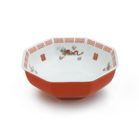 昔ながらの中華屋さんのラーメン鉢をモチーフにしたシリーズに仲間が増えました。文様は、非常におめでたい意味や、おまじないの意味がこめられています。ハチカクバチは通常のチャーハン皿に比べ、ふちが丸くコロンとした形状なので、パラパラのチャーハンもすくやすいです。その他汁ものなどにも使い勝手のいい鉢です。