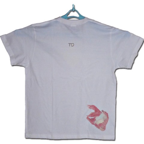 【大松雅士】日本伝統文化代表作家のちぎり絵Tシャツ(金魚3/メンズXL)【Tadashi Daimatsu】