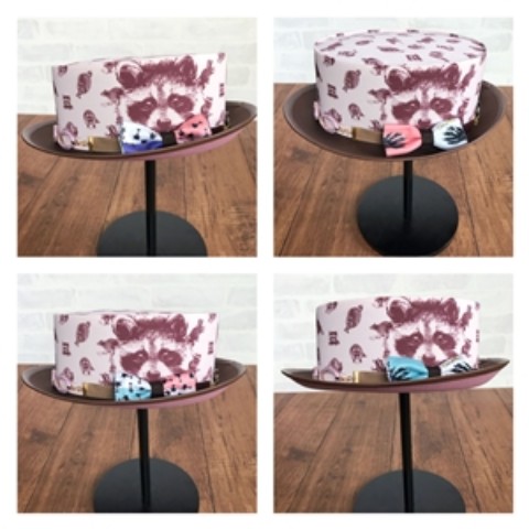 (アライグマの手の柄2色、デッキブラシの帽子くん柄2色)