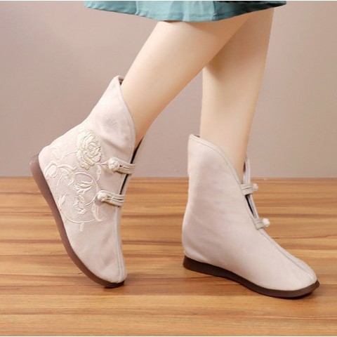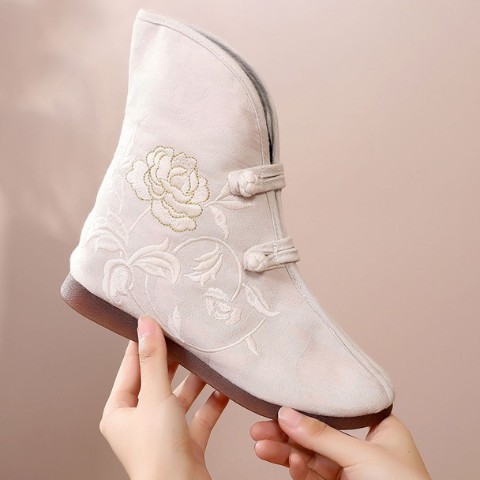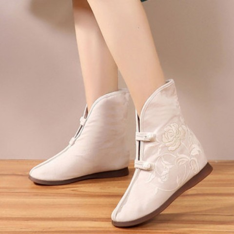 白薔薇の刺繍が入った中華ブーツ