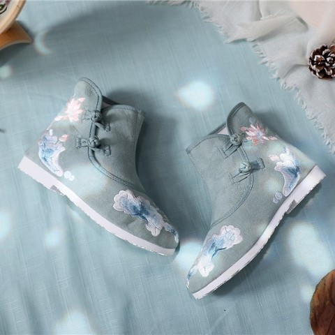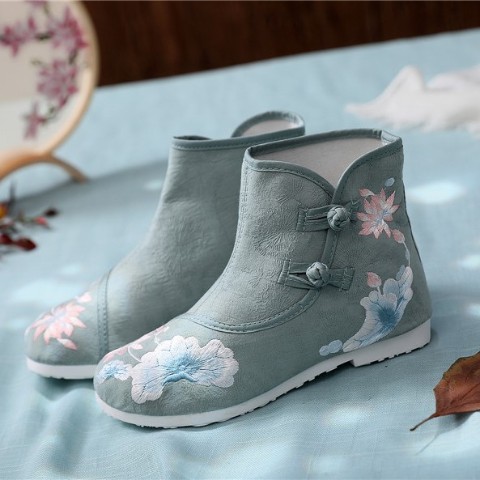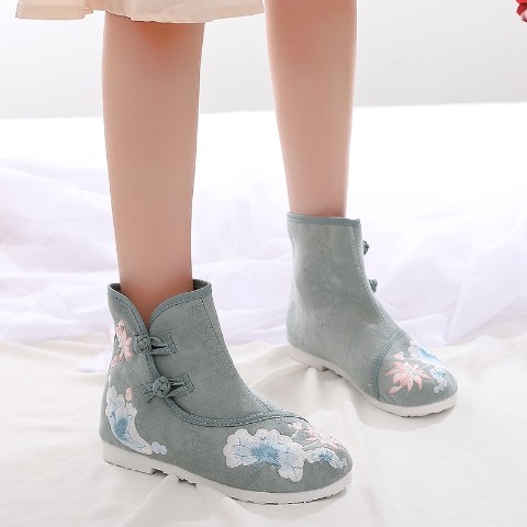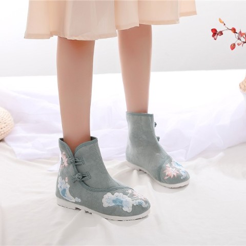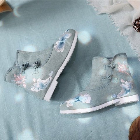 雪灯のような優しいシュガーカラーな華刺繍の入った中華ブーツ