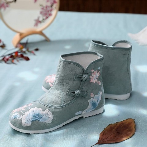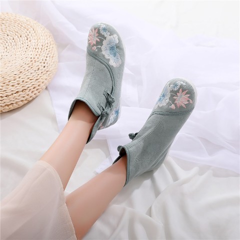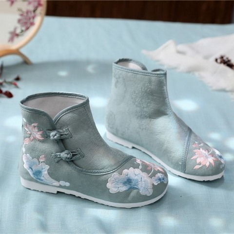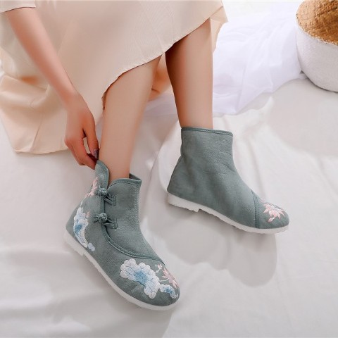 雪灯のような優しいシュガーカラーな華刺繍の入った中華ブーツ