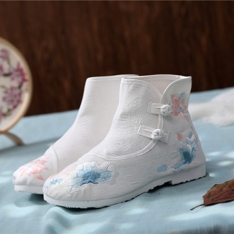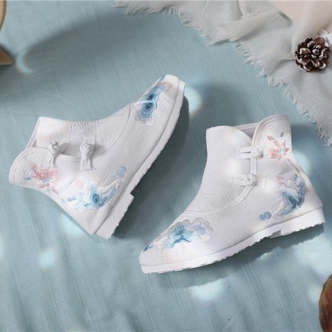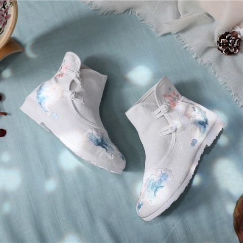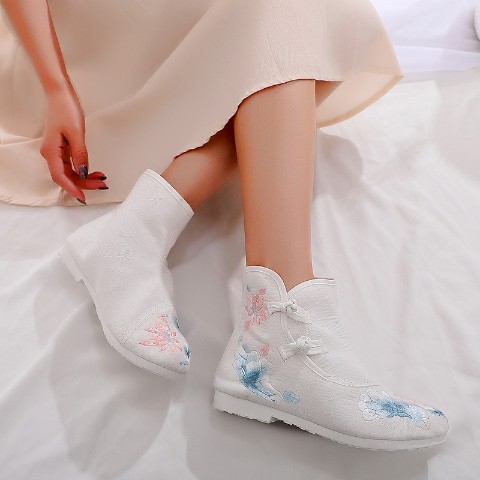 雪灯のような優しいシュガーカラーな華刺繍の入った中華ブーツ