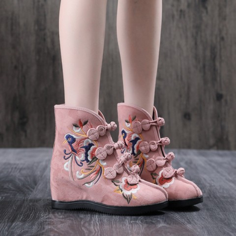 トリと華の刺繍が入った中華ブーツ