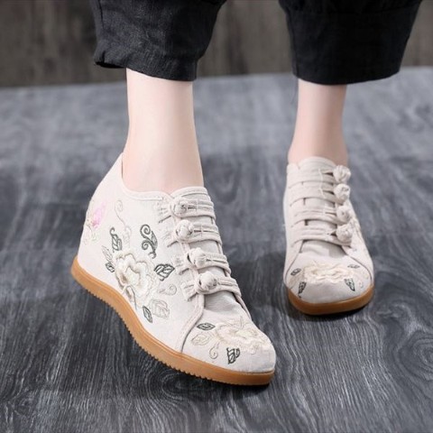 華と蝶の刺繍が入った、かわいい中華シューズ*