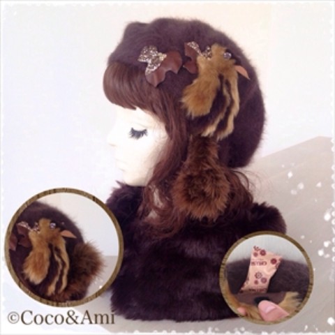 サイドに揺れるふわふわ尻尾はピン内蔵で、帽子にとめるとくるんと上向きに変更できる優れもの。髪型やお洋服、その日の気分でお好きにご使用ください。