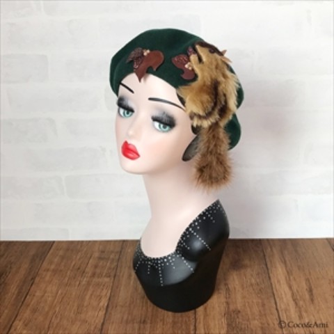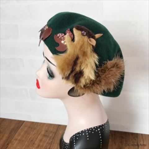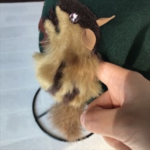 サイドに揺れるふわふわ尻尾はピン内蔵で、帽子にとめるとくるんと上向きに変更できる優れもの。髪型やお洋服、その日の気分でお好きにご使用ください。