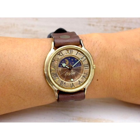 クラシカルな真鍮の素材感と、サン&ムーン表示がマッチしたモデルです。