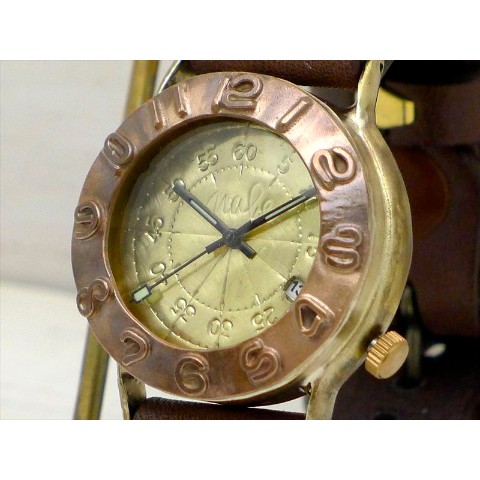 ベゼル部分に銅を使用したコンビタイプです。銅と真鍮の経年変化が楽しみなモデルです。