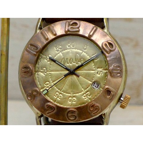 【手作り腕時計】Explore3-B-DATE 銅ベゼル 36mm DATE(日付表示) 【完全受注生産】
