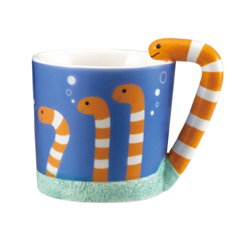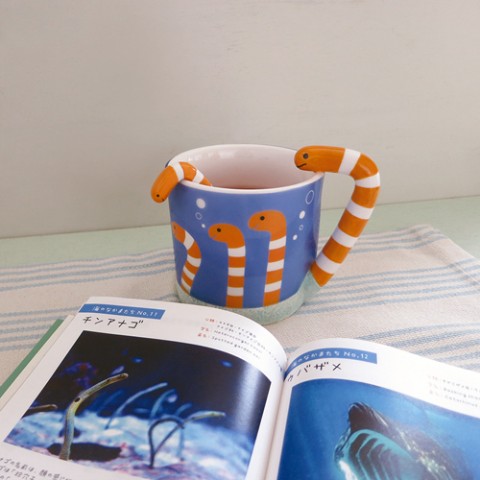カップからニョキっ。水族館の人気者ニシキアナゴがマグカップになりました。砂のなかからユラユラ、ニョロニョロ姿はとっても癒される~。