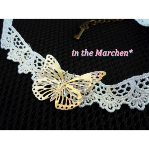 【in the Marchen*】「銀色蝶々と銀星のスプリングチョーカー4」