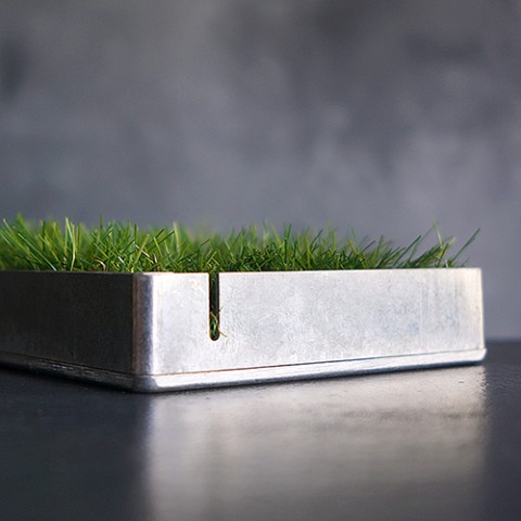 本物のようなリアルな人工芝で手前に押して沈み込ませ見やすい状態をキープデスク上に小さな公園を表現しました