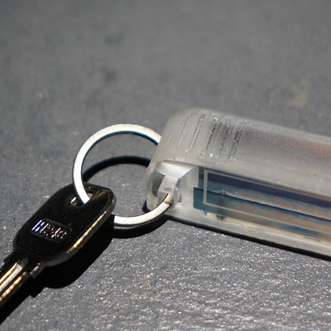 左上部滑り止めの溝を付けました。握った時の親指が触れる位置にあり、持ったときのグリップの役割をします。またポケットから取り出す時どの位置/方向で見ずとも分かるので、鍵穴に差し込むのが容易になります。