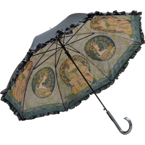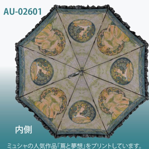 名画フリルジャンプ傘~晴雨兼用~(ミュシャ「蔦と夢想」)