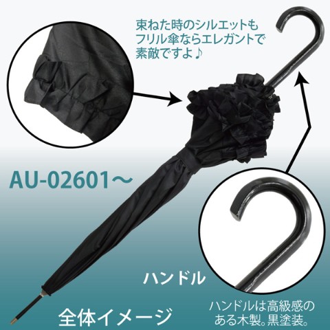 たっぷりのブラックフリルがゴージャス!ブラックハンドルでさらに高級感アップ。内側に広がる名画の世界がさらに引き立ちます。安心のUVカット率99%です。