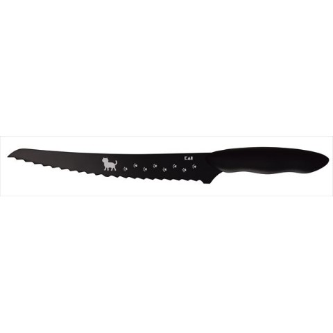 柔かいパンやケーキもきれいにカットできる波刃のパン切りナイフ。ねこ足のイラストが1cm刻みにデザインされているので、切る時の目安にもなり便利です。
