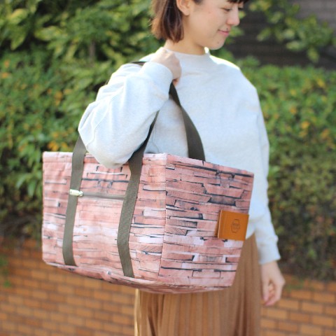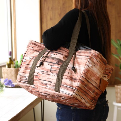 【木目柄エコバッグ】ウッド調クーラーショッピングトートバッグ ユーズドウッド柄