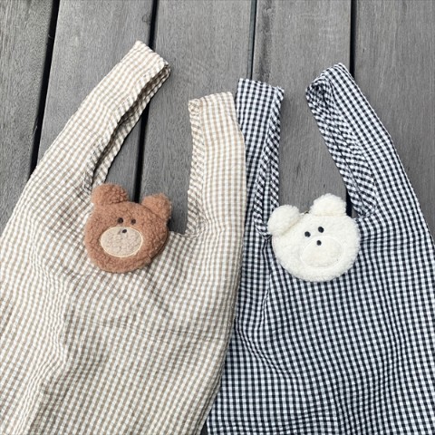 愛嬌のあるアニマル達から出てくるギンガムチェックのトートバッグがおしゃれ。