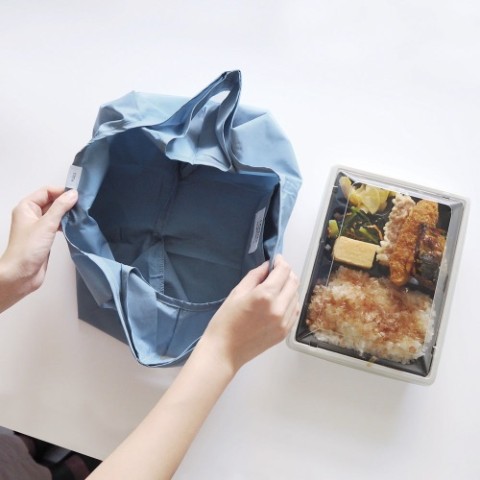 コンビニのお弁当がスッポリおさまるマチが広めのエコバッグ。