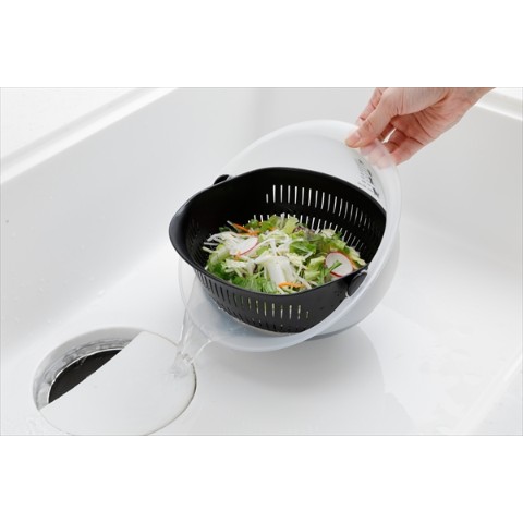 ボウル部分をクルッと回すと中身が落ちずにしっかり水切りができます。