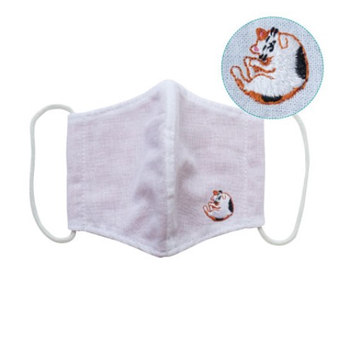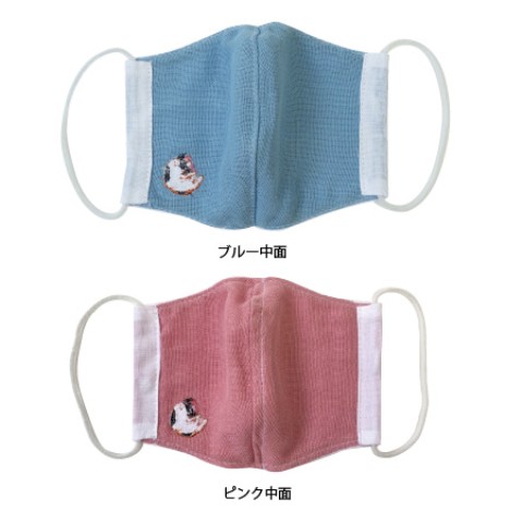 刺繍入りさらしとガーゼの立体マスク-さらっと気持ちいい二重ガーゼと日本てぬぐいのさらしで作ったマスクに、疫病退散を願って可愛いワンポイント刺繍をしました。洗って繰り返しお使いいただけます。日本製 ・洗濯の際は手洗いで行ってください ・塩素系漂白剤は使用しないでください ・肌に異常があった場合は使用を中止してください