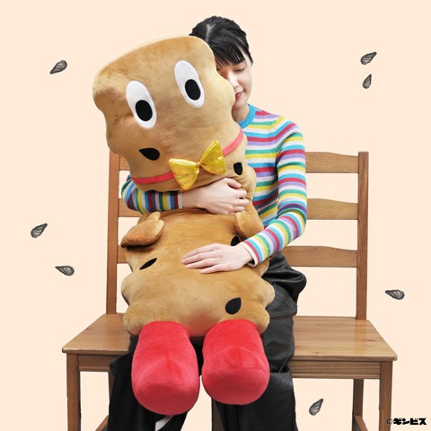 ギンビスのロングセラービスケット「アスパラガスビスケット」のキャラクター アスパラ君が抱きまくらになって登場!!