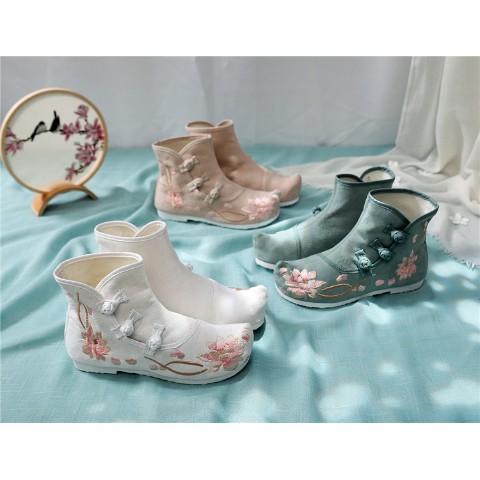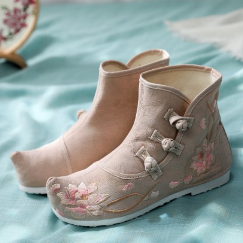 飴色シュガーカラーの華刺繍の入った中華ブーツ