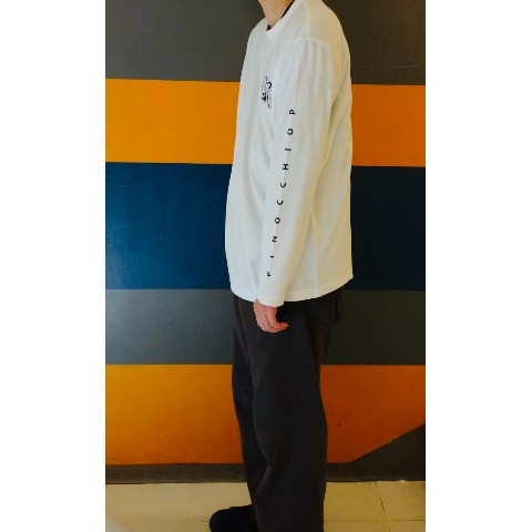 描きおろしの「アイマイナ」と「どうしてちゃん」が左胸に!腕に「PINOCCHIOP」文字をプリント!