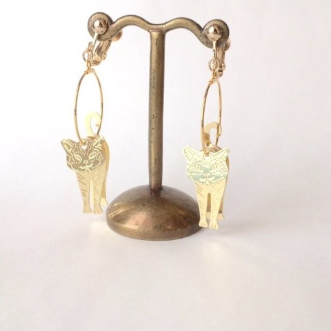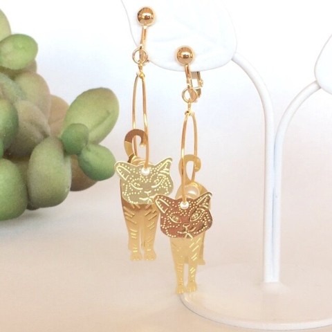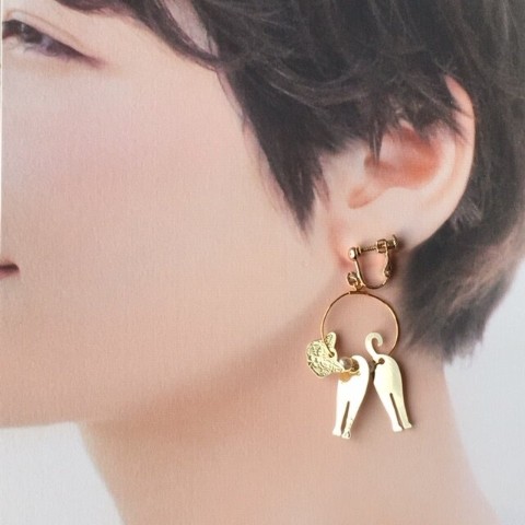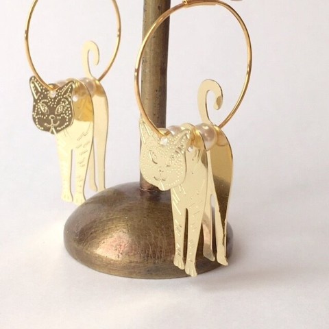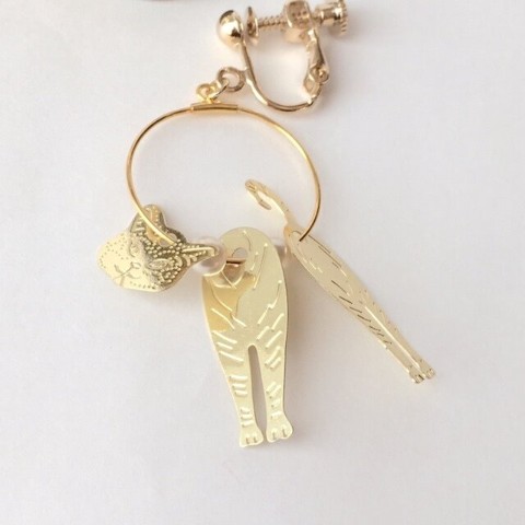 【ciao】一緒に歩いてくれる猫さんのイヤリング(金色 ガラスパール リング フープ ネジバネ式)