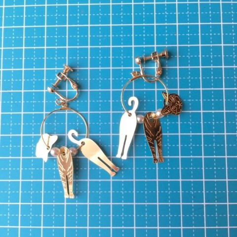 銀色の猫さんのイヤリング、金銀猫さんのフープピアスも販売中です♪