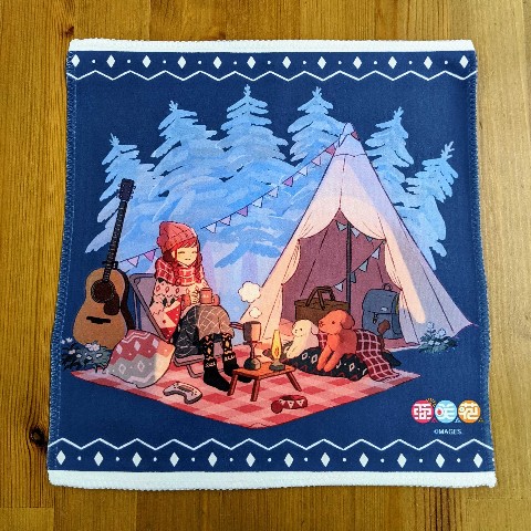 【夜キャンプver.】コラボイラストが映えるキュートなハンドタオルが登場!