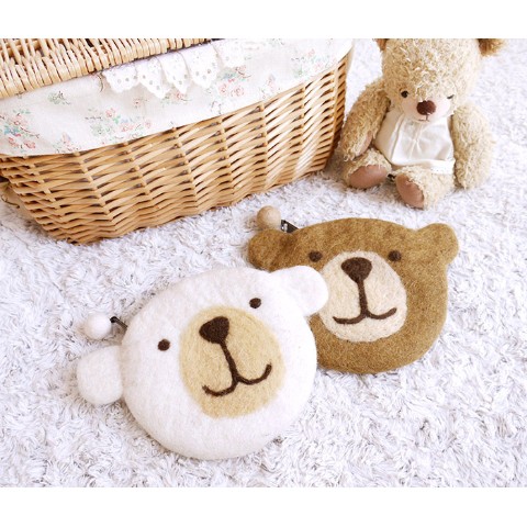 ”つぶらな瞳の優しい表情が気持ちを穏やかにしてくれそうなクマの小物入れ。ネパールから届いた心温まる手作りフェルトで作られています。