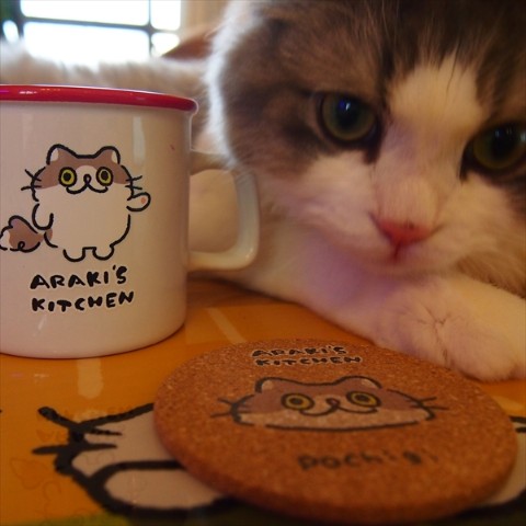 あらきさんの愛猫ポチギをモチーフとしたマグカップです。