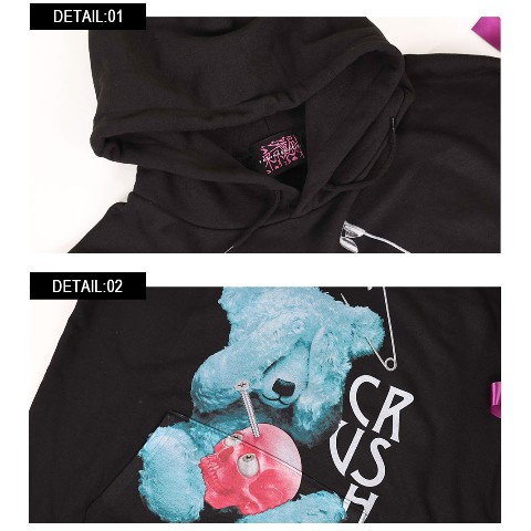 ””””””恥ずかしがり屋のクマのグラフィックが病みかわいいビッグパーカー。