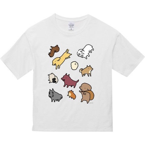 【うかうか】貼りまわりこいぬビッグシルエットTシャツ(Lサイズ)