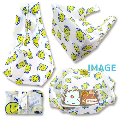 コンビニやスーパーのお弁当がスポッと入る、便利なサイズのエコバッグ。マチが広いのでお弁当などを水平に持てます。コンパクトにくるくるっと畳めるので、小さなバッグやポケットにも◎