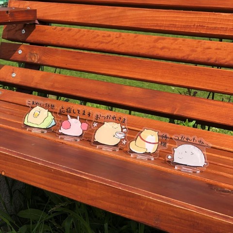 キャラクターと励ましの一言が入ったアクリルスタンド。