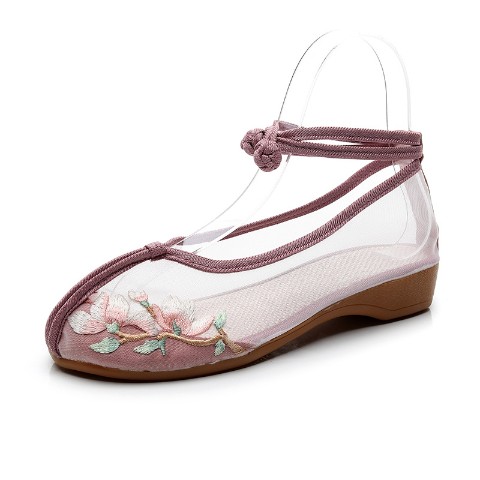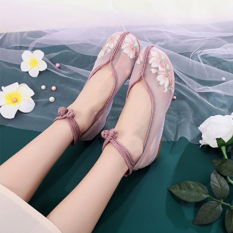 華の刺繍がデザインされた中華シューズ。