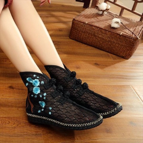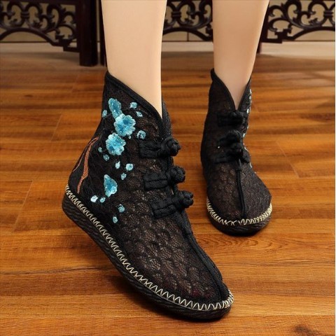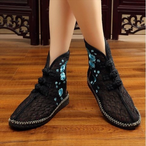 梅レース中華シューズ black 25cm(40)【お砂糖少女しゅくれどーる】