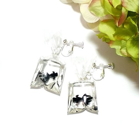 【#kawaiiiii!】夏祭りの想い出 イヤリング(金魚すくい)黒