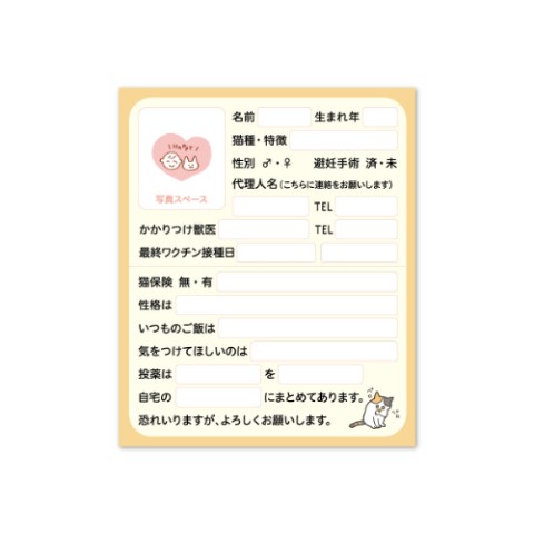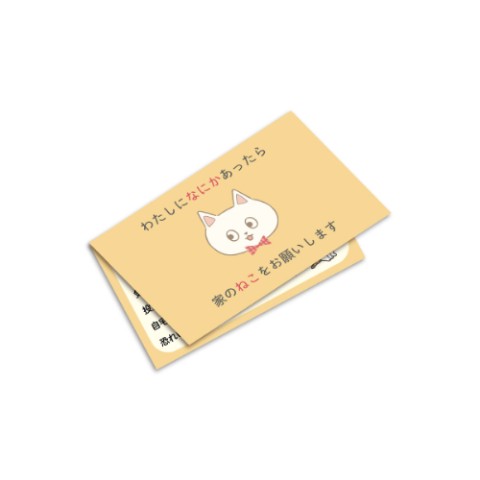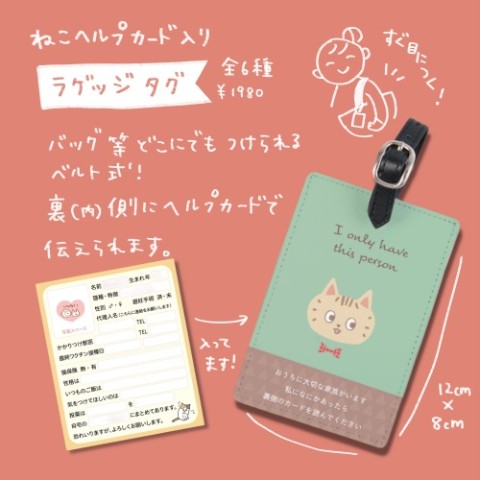 カバン等、持ち物に小さいベルトで取り付けられるタイプ。裏に付属のねこヘルプカードが収納できる仕様です。
