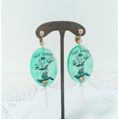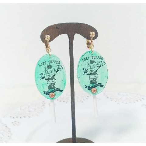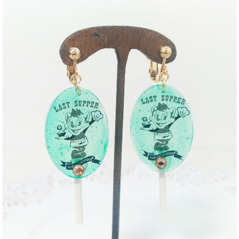 オリジナル★毒盛りねこちゃんキャンディーイヤリング ポップエンジョイシリーズ メロン