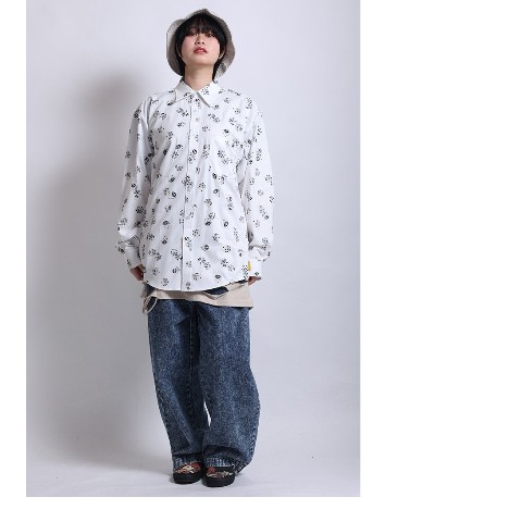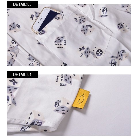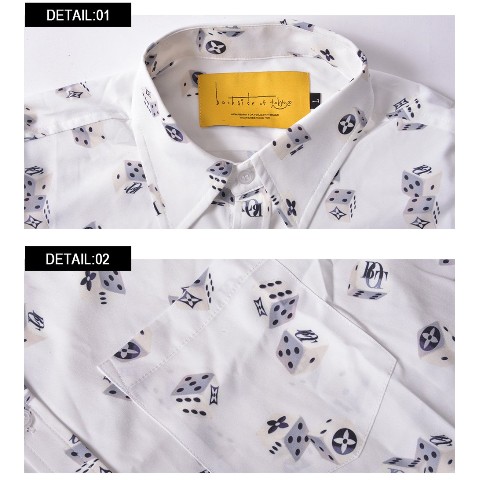 ”””ダイスプリントを施した総柄シャツです。