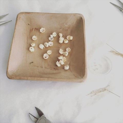花びらの葉脈が透けてみえるので、既製品のビーズにはない、ふしぎな「本物のお花感」があります。