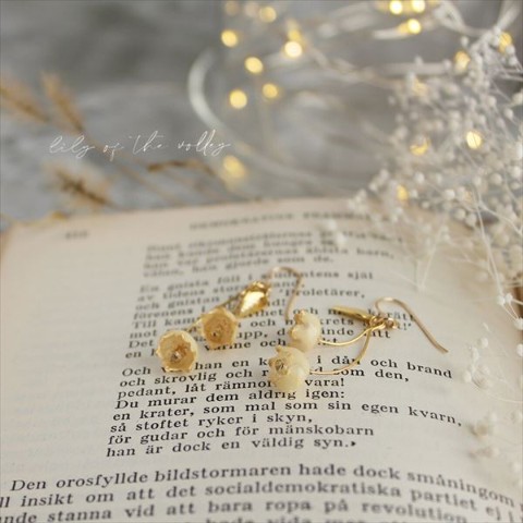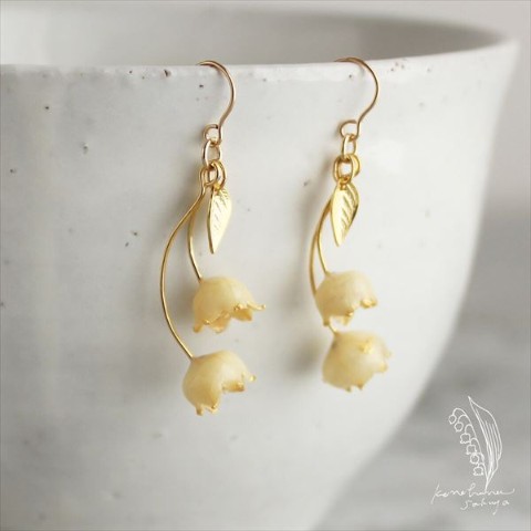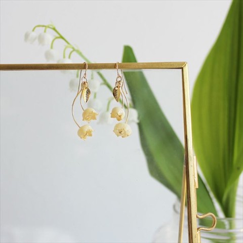 恥ずかしそうにうつむいた その控えめな姿は、目立ちませんが、そんなすずらんの愛おしさをそのままに、女性らしい落ち着いた雰囲気の、ピアスに仕立ててみました。