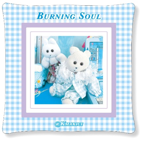 くまきちときんたろうが大きくプリントされたしっかりサイズのクッション。