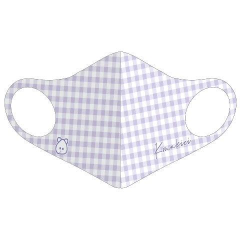 シンプルなパープルのギンガムチェックにくまきちのワンポイントがアクセントに